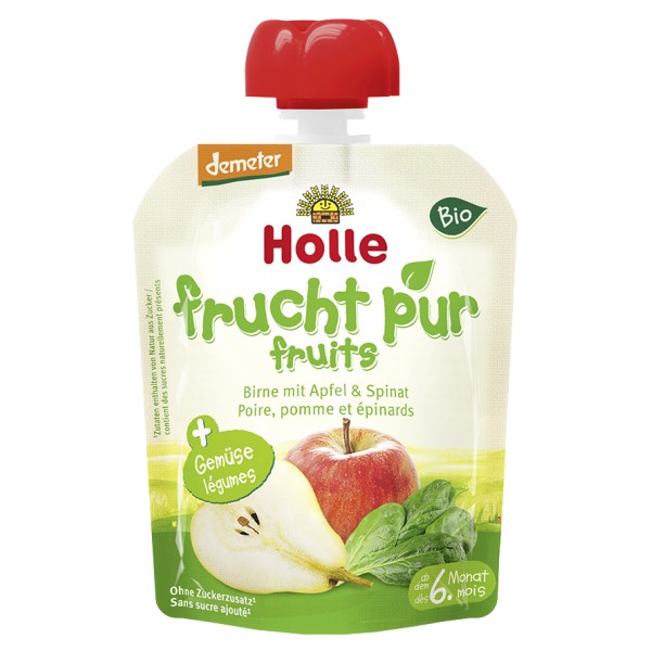 Holle, Piure de fructe: pere si mere cu spanac, 90 gr buc